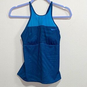 Nike Swim Blue Racerback Tankini Top Small Tropical Print Shelf Bra