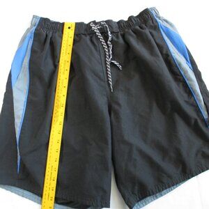 Nike brand swim trunks! Size men's 2XL in a black and blue pattern. Measurements in photos. Preowned good condition with signs of normal wear.