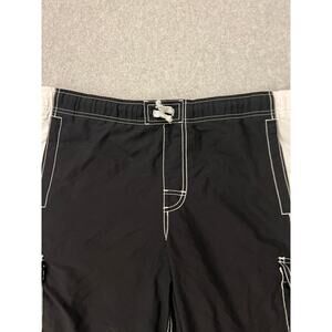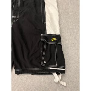 Nike Swim Trunks Men's Large Black White Pockets Drawstring Cargo Shorts