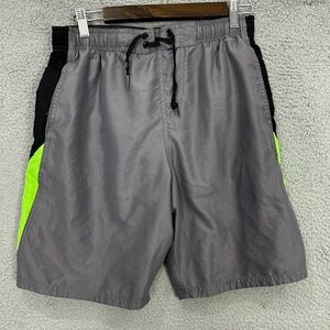 Nike swim trunks mens medium gray green swoosh lined board shorts beach resort