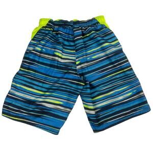 Nike Swim Trunks Neon Stripe Lined Shorts Pockets Mesh Men's Medium Beach Pool