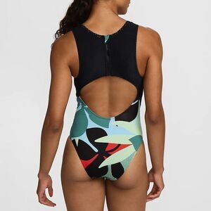 This listing is for a NWT's Nike Swim Women's Keyhole Back One-Piece Swimsuit in vapor green, in size small. Let your sporty style bloom in this contemporary swimsuit. Best for kicking back or taking a gentle swim, it features light bust support, standard bottom coverage and a high-cut leg. Plus, a zipper helps make changing easy.