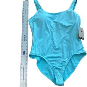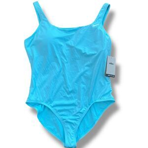 Nike Swimsuit Womens XL Blue Essential U Back One Piece Removable Cups Sporty Beach Pool Athletic Workout Gym Spa Laps Sportswear Swoosh