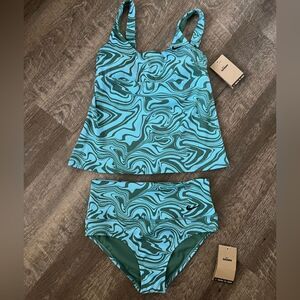 Nike Swirl Scoop Neck Tankini and High Waist Bottom Set- Size Small