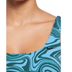 This listing is for a NWT's Nike Swirl Scoop Neck Tankini and High Waist Bottom Set in aquarius blue, in size small. Give your poolside OOTD a vintage summer twist with this retro design inspired by the movement of water and waves. This full-length swim top from Nike is a great pick if you like all day water play. The tops features high bust support will hold up in high-intensity activities. Adjustable straps allow custom comfort. It’s equipped with soft removable cups and secure cup pockets designed for water wear and comfortable coverage. Please see photos for measurements.