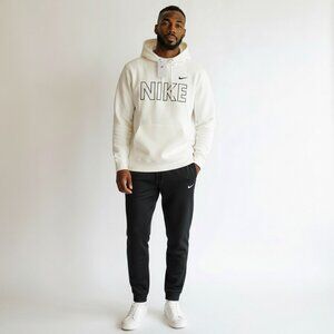 Get back to your style roots with Nike’s classic Club Hoodie and Solo Swoosh Joggers. Brushed fleece keeps you warm and comfortable, and ribbed cuffs keep warmth inside your hoodie. Pair them up this outfit with your favorite sneakers and have a Nike day.