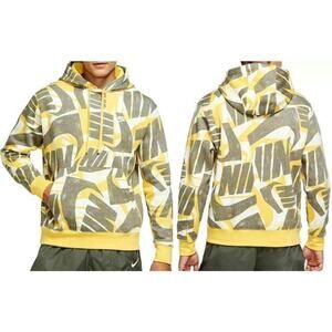 Nike Swoosh All Over Hoodie Yellow Grey White Mens Small