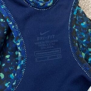 Nike Pro Swoosh Medium Support Dri-FIT Racerback Sports Bra in a Blue Abstract Print
