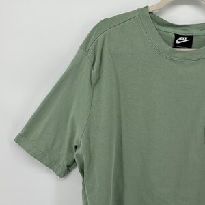 This Nike top features a stylish boxy crop design in a versatile green hue. Made from soft cotton-blend fabric, it offers a comfortable fit with its classic short sleeves and crew neckline.