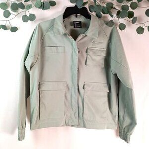 Nike Swoosh Light Green Jacket Size M Women’s Zip Snap Closure Polyester