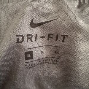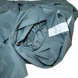 The Nike Swoosh Lined Running Performance Training Shorts in Men's XL are designed for the active individual seeking comfort and style. These green shorts feature a drawstring closure and an elastic waist for a secure and adjustable fit. Made of lightweight and breathable polyester material, these shorts are quick-drying and moisture-wicking, making them ideal for all seasons. With a 7" inseam and reflective accents, these shorts are perfect for casual wear and various athletic activities, all while showcasing the iconic Nike logo. Machine washable for easy care, these shorts are a must-have for sports enthusiasts. Excellent condition. No rips/holes/tears/excessive stretching/stains/discoloration/snags. Kept in a smoke/pet free home.