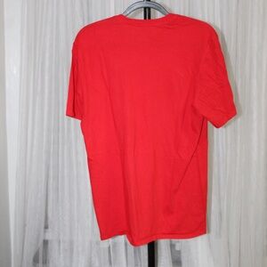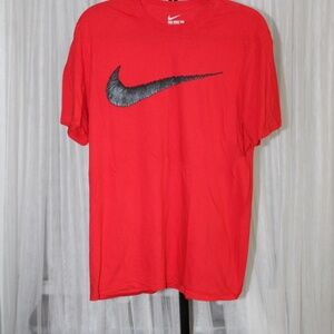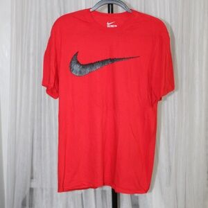 Nike Swoosh Logo Tee. Red with oversized black Nike Swoosh logo. Classic crew neckline and short sleeves