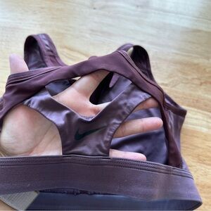 Elevate your workout wardrobe with the Nike Purple Sports Bra, designed for medium-impact activities. Crafted from a smooth, moisture-wicking fabric, it ensures you stay dry and comfortable. The racerback design features a mesh panel insert for enhanced ventilation, while the wide elastic band provides reliable support.