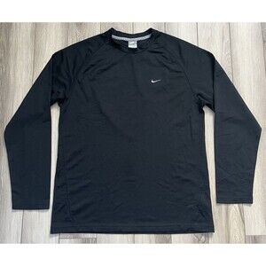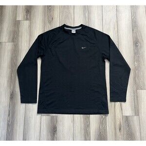 Nike Swoosh Vintage Logo Black Mesh Jersey Long Sleeve T-Shirt Mens Sz Large