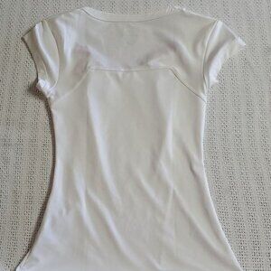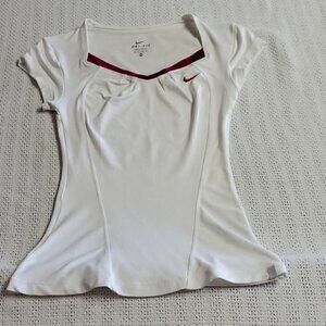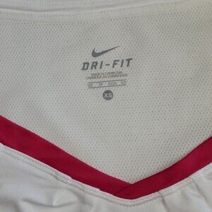Nike Swoosh White with Pink Trim V-neck Sz. XS SS Athletic Shirt