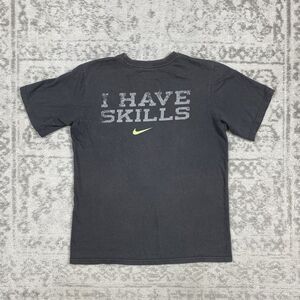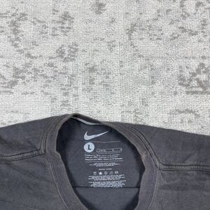 The product is a Nike T-shirt for boys in size Large 14/16, featuring a solid gray color with the logo accent. Made of cotton material, this short sleeve tee has a crew neck and pullover closure, making it suitable for casual occasions. The regular fit shirt is machine washable and perfect for all seasons, especially summer, fall, and spring. It is designed for basketball performance and activity, making it a versatile and comfortable option for young boys.