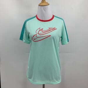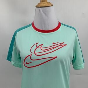 NIKE T SHIRT WOMENS L LARGE DRI FIT SWEAT WICKING LIGHTWEIGHT RINGER CREW TEE