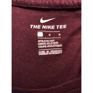 Nike T Shirt Womens Large The Nike Tee Burgundy Red Spell Out Gold Graphic Scoop