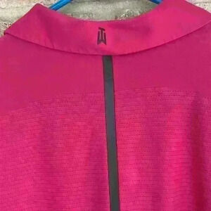 This Nike Tiger Woods Collection Pink Dri-Fit Polo comes from the Valero Texas Open played at TPC San Antonio. There is a very slight snag on the back and some wear around the snaps. This shirt has been pre-loved and still has lots of wear left. I’m sure this shirt sold for well over $65 but I will slash that price and sell it for just $30!!