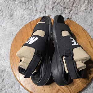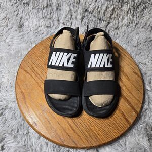 Nike Tanjun Women Size 7 Shoe Black White Ankle Strap Open Toe Sandals 882694-00
