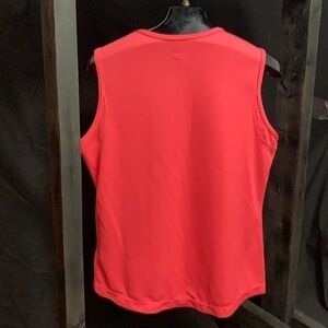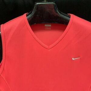 Size large. Polyester. Pink in color. Vneck tank top. Very good condition.