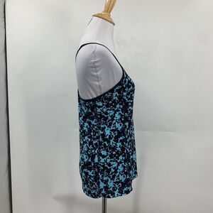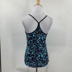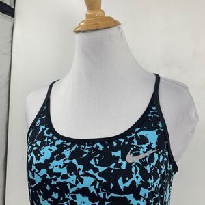 NIKE TANK TOP WOMEN S SMALL BLUE BLACK DRY MILER RUNNING Y BACK ATHLETIC STRETCH