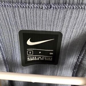Nike tank top dusty blue color size small in great condition! Striped ribbed material down the front with mesh sides. High neck racer back