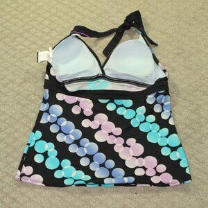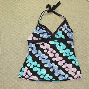 Nike Tankini Halter Swim Top Size 8 Aqua Blue Pink Black Bubble Polka Dot Padded