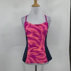 Nike Tankini Top Womens M Medium Multi Open Racerback Swimwear Shelf Bra Tank