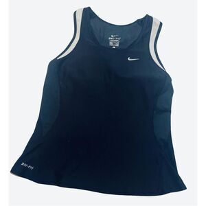 Round neck, drifit technology, built in bra, elastic material, halter neckline and signature logo