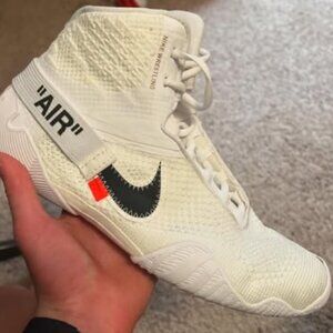 Jordan Schmidt won and loss a bunch of matches with these bad boys here. Folkstyle, Freestyle and Greco-Roman Wrestling. Size 10.5 These things are super sick and won’t find there anywhere unless you get them made new. Very comfy sweet design I really don't want to sell them tbh. So no, I won't be discounting them. All transactions go through Poshmark only. Nike Tawa off-white custom rare used wrestling shoes size 10.5.wrestling shoes . Might even sell my size 9 pair. brand new(walked around in)