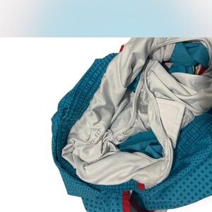 Teal shorts with gray interior. Dri-FIT technology for comfort.