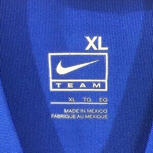 Base layer or compression shirt by Nike Team with mock neck. It is a royal blue color. Would be great for under a jersery for football, soccor or baseball. Size is XL and measures pit to pit 19.5 inches and length is 25 inches. Good condition.