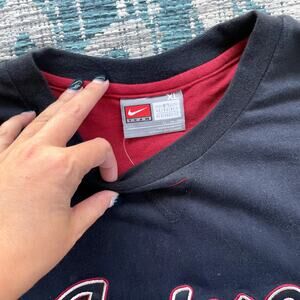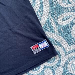Vintage early 2000s Nike Team t-shirt featuring the Houston Astros. The tee is a classic crew neck style in a dark navy color with "ASTROS" printed on the chest in a white font with an orange outline. The front also features an orange Nike swoosh. The back of the shirt displays the iconic "Nike Team" genuine merchandise logo. Made from 100% cotton, this shirt offers a comfortable, lived-in feel, perfect for a casual day or to show your team pride.