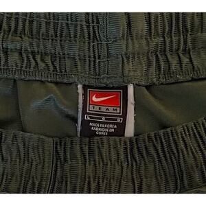 Show your love for the University of Miami basketball team with these Nike team issued men's shorts. The green and white colors and the team logo add a touch of style to these comfortable shorts. Perfect for basketball enthusiasts, these shorts are sized L and are made for men. They are great for wearing while playing or simply for showing support for the team. Get your hands on these high-quality basketball shorts today!