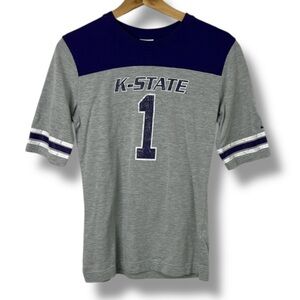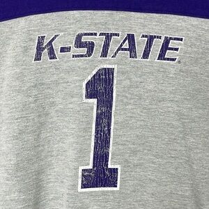 Show your team spirit with this K-State t-shirt. Featuring a stylish gray and purple design, it's perfect for all the colligate sports!