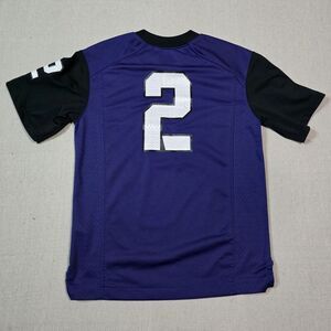 Nike Team TCU Horned Frogs FOOTBALL Jersey 2014-15 PURPLE/BLACK #2 Womens SMALL shows signs of wear sold as is see pictures for reference