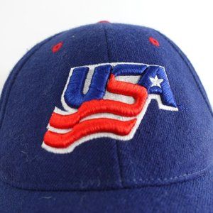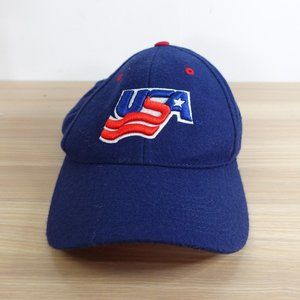 Nike Team USA Hockey Hat Blue Wool Cap Swoosh Flex Dri Fit Logo Adjustable One Size Cloth Strap