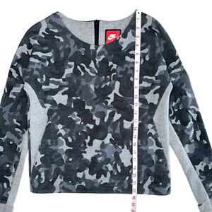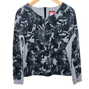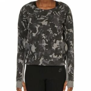 Nike Tech Cropped Carbon Heather Black Camo Crewneck Sweatshirt Size Small