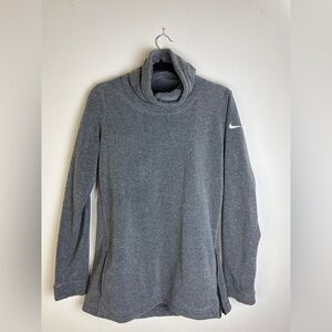 Athleisure meets comfort in this Nike Dri-FIT pullover. Features a soft gray fabric with slouchy funnel neck, side zip vent, and subtle swoosh logo on the sleeve. Easy layering piece for running, gym, or cozy weekends.