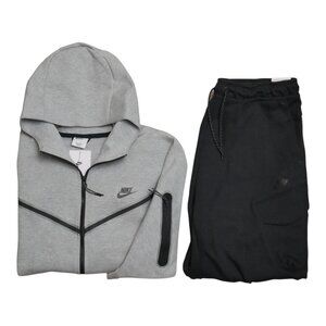 Nike Tech Fleece 2 PC Set Tracksuit Matching Windrunner Sweatsuit Gray/Black NEW