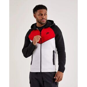 Nike Tech Fleece Full-Zip Hoodie Men’s Size XL White/Red/Black FZ4709-100