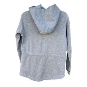 Nike Tech Fleece Cape Hoodie. Women’s size small. Color is Light Gray with Black accents. Asymmetrical zip closure, pockets, conch at waist. Good preowned condition with light wear at the sleeve cuffs and a small hole at the shoulder/collar (covered when collar is down). Tons of life left in this hoodie!!