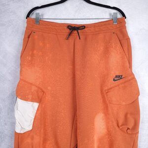 Nike Tech Fleece Joggers Mens Large Orange Utility Cargo Pockets Drawstring Pant