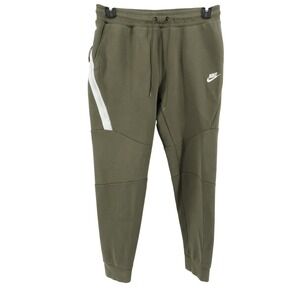Keywords: Nike, Tech Fleece, Joggers, Sweatpants, Olive Green, Mens, Activewear, Athletic, Casual Pants, Drawstring Waist, Tapered Leg, Ribbed Cuffs, White Stripe