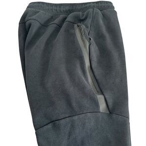 These Nike Tech Fleece Tapered Joggers are men's activewear pants in size 2XL. They feature an elastic waist with a drawstring, breathable fleece fabric, and a comfortable stretch fit. The pants have a sleek black color, pockets, and are easy to care for with machine washable fabric. Perfect for running and jogging, they offer a designer athleisure style suitable for winter, summer, fall, and spring seasons. 36" waist and 26" inseam. Great condition. No rips/holes/tears/excessive stretching/stains/discoloration/snags. Kept in a smoke/pet free home.