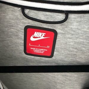 Stylish gray zip-up jacket with black accents. Features the iconic Nike logo.