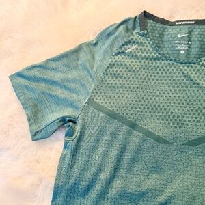 Light like air. Cool like a breeze. The Nike TechKnit Top uses breathable, sweat-wicking technology to help keep the heat out and let you focus on the road ahead. Its advanced design is geared for movement, so you can fly freely through your stride. This product is made from 100% recycled polyester fibres.