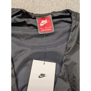 The Nike Tech Woven Vest for men in XL size features a loose fit and is insulated with polyester material. This black puffer jacket is perfect for casual occasions, with a zip closure and solid pattern. The Nike brand ensures quality and style, making it a versatile addition to any man's wardrobe.