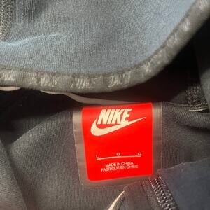 Nike Tech Therma-Fit Black Womens Large Mini Swoosh Asymmetrical Full Zip Hoodie long sleeve drawstring kangaroo pocket graphic logo 100% polyester